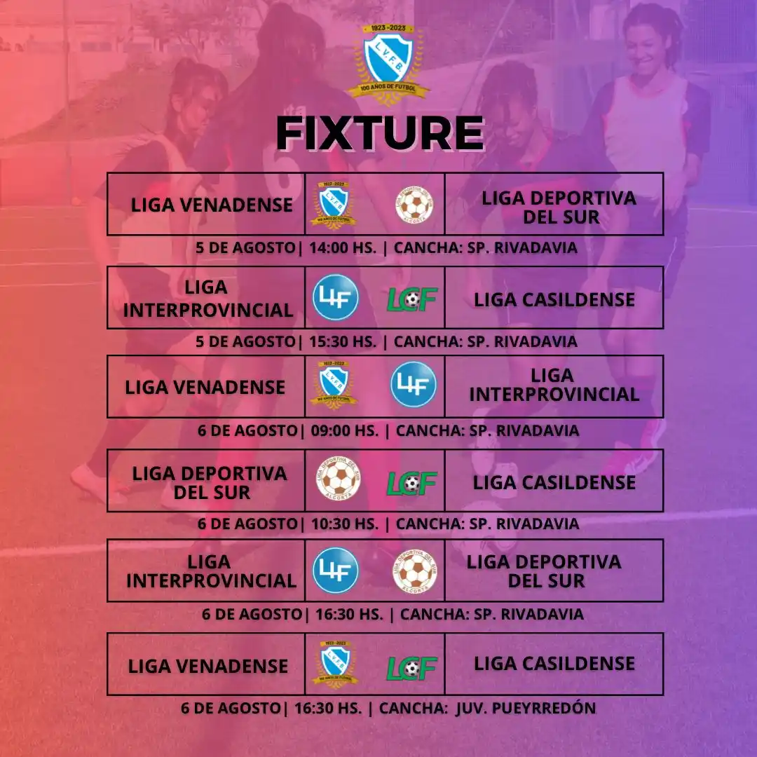 El próximo fin de semana, sábado 5 y domingo 6 de agosto, la Liga Venadense será sede de una de las zonas de la Copa Santa Fe Fútbol que este año se hará en formato de Selecciones de Ligas. Además del combinado local, las canchas de Sportivo Rivadavia y Juventud Pueyrredón, estarán recibiendo a las selecciones de la Liga Deportiva del Sur, la Interprovincial y la Casildense.