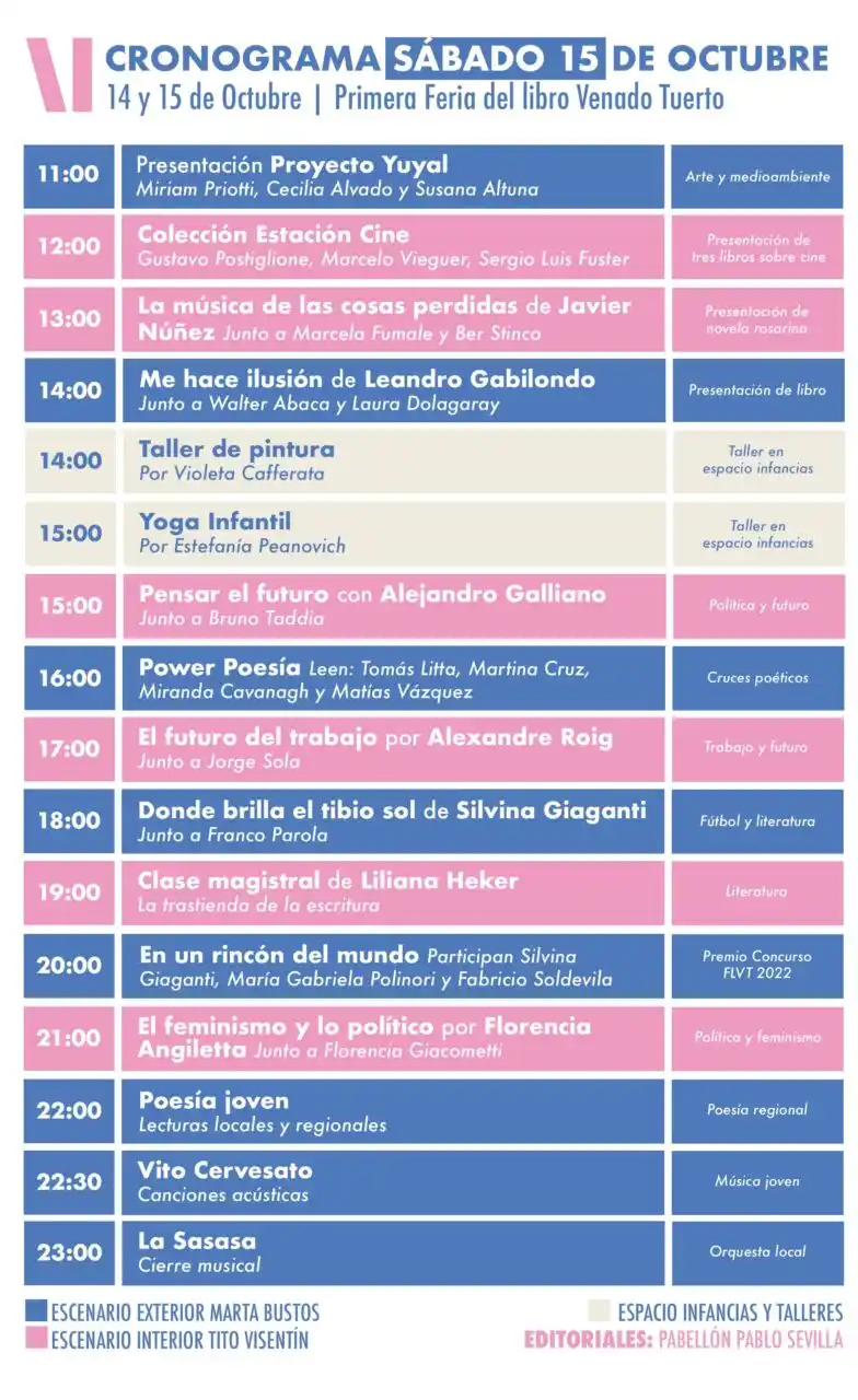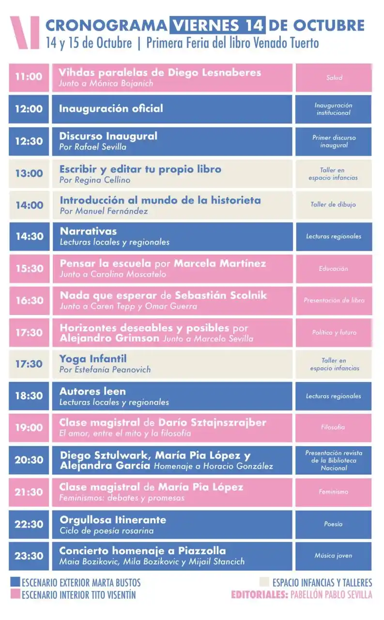 Este lunes, y menos de dos semanas de la primera Feria del Libro de Venado Tuerto a realizarse los días viernes 14 y el sábado 15 de octubre, en las instalaciones del Club Atlético Jorge Newbery, lanzó su nutrida grilla de actividades, donde adelantan dos jornadas para no perderse.