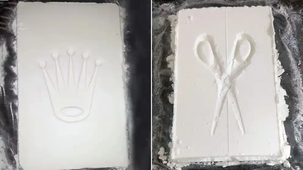 Novelino y Uberti tenían como costumbre firmar la droga que vendían. A los panes de cocaína le ponían sus iniciales “LN”. O la corona de un rey. También una tijera para graficar que esa droga estaba cortada.
