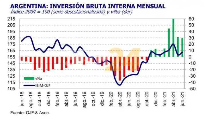 “La inversión mostró una recuperación luego del freno de mayo. Así lo evidencia tanto la suba del índice desestacionalizado, como el aumento en la inversión medida en dólares y el incremento expresado como porcentaje del PIB”.