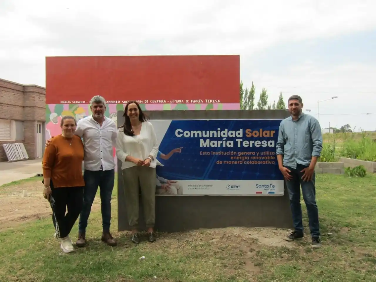 En el marco del Día Internacional contra el Cambio Climático, este lunes 24, se inauguró oficialmente la Comunidad Solar de María Teresa, un proyecto de Energía Renovable Colaborativa que permite que personas e instituciones se asocien para poder abastecerse a partir de una única instalación de generación de energía eléctrica renovable, siendo la primera localidad de la provincia en ofrecer este tipo de servicio.
