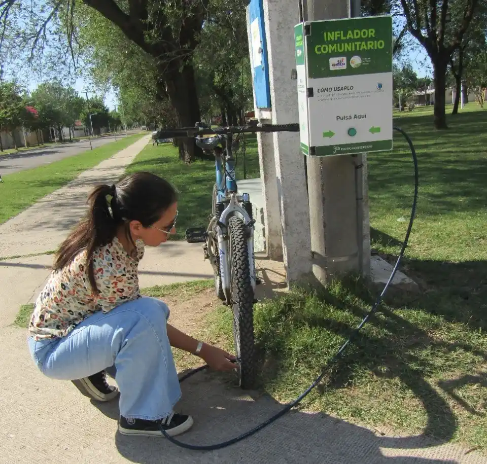 La comuna de María Teresa instaló el segundo inflador comunitario en un espacio público de la localidad. En esta oportunidad el lugar elegido fue la Plaza del Mono.