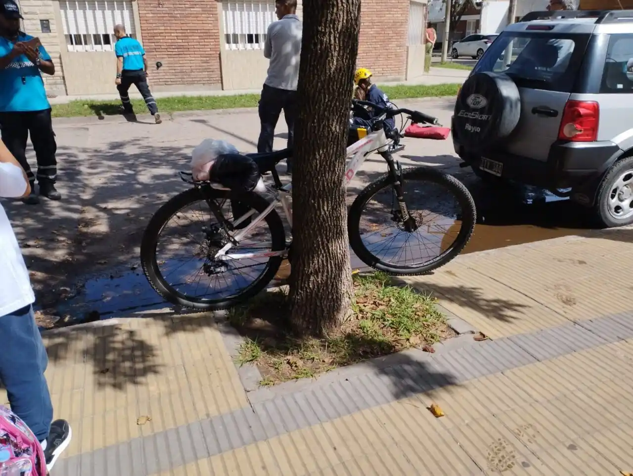 Ya en horas de la tarde, a las 16.34, en 3 de Febrero al 800 se produjo un accidente entre una camioneta Toyota Hilux, color blanca, propiedad de Daniel de 57 años que se encontraba estacionada y una bicicleta Mountain Bike, color verde, en la que se movilizaba Alejandro de 24 años y Agostina de 20.