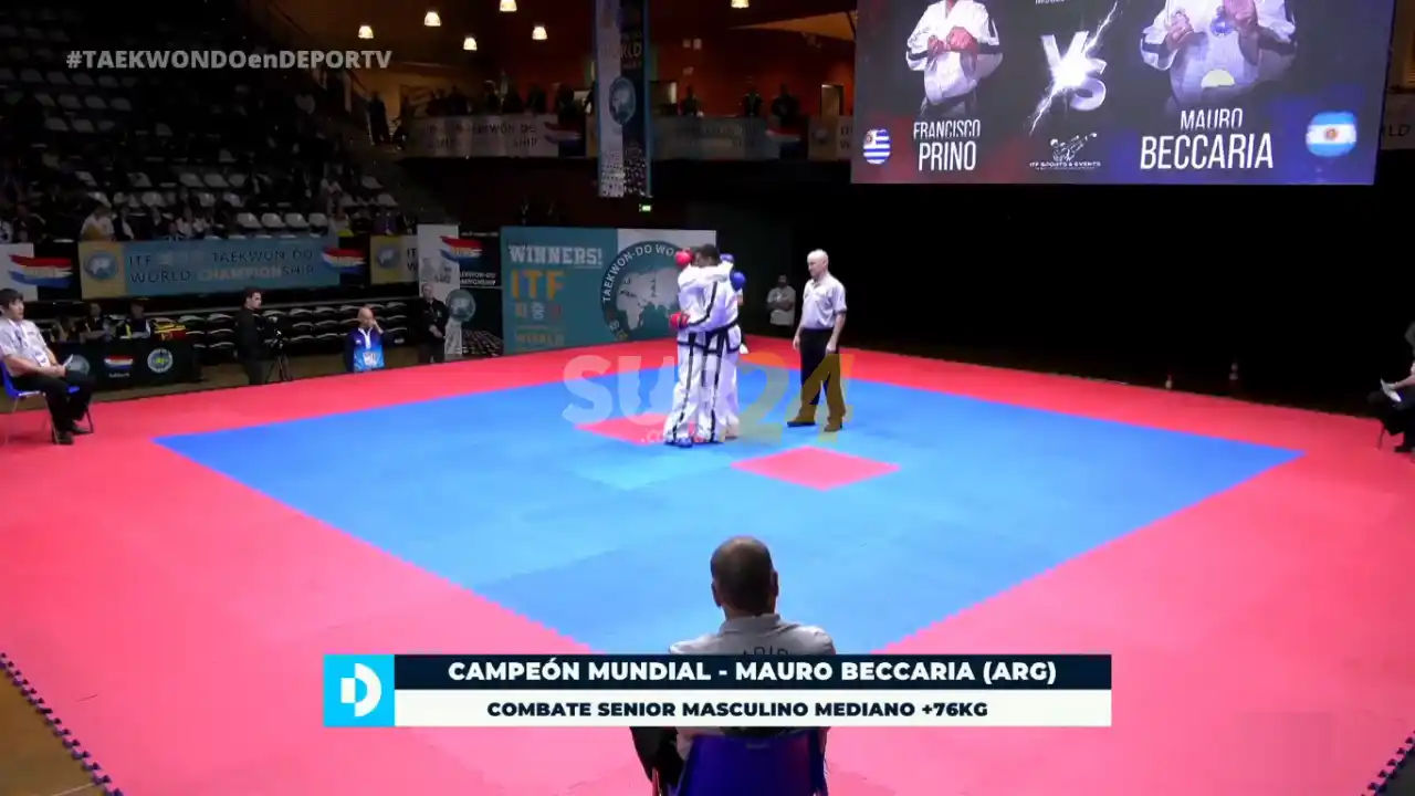 Luego fue el turno del venadense Mauro Beccaría que se colgó dos medallas. Primero la de plata en la modalidad Formas, mientras que luego se consagró campeón del mundo en Combate. Mauro compitió en la categoría Senior Mediano hasta 76 kg. y derrotó en la final al uruguayo Francisco Pino.