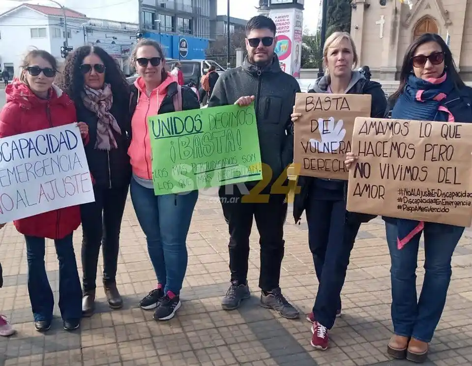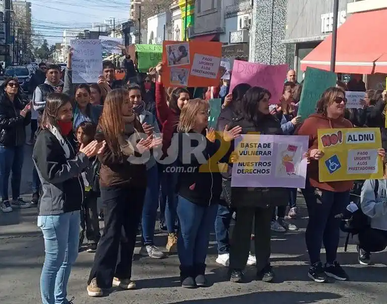 En horas de la mañana de este martes, prestadores de servicios a personas con discapacidad realizaron una movilización para reclamar por las demoras en los pagos de las obras sociales y las complicaciones que ello conlleva. De la convocatoria también participaron familiares de personas con discapacidad y dirigentes políticos, entre ellos la diputada provincial Rosana Bellatti y las concejales Mariana Iturbide y María Verónica Ruiz.