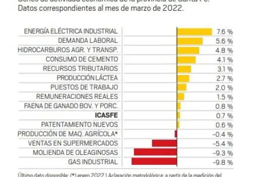 El Informe de Actividad Económica de la Provincia de Santa Fe advierte la existencia de “nuevas señales de estancamiento” y destaca que en marzo de 2022, ocho de las catorce series que representan la actividad económica de la provincia registraron variaciones mensuales positivas. Fueron diez los subindicadores que crecieron en la comparación interanual, pero sus tasas fueron de sólo un dígito y así el resultado para el agregado provincial de los últimos doce meses es pobre.