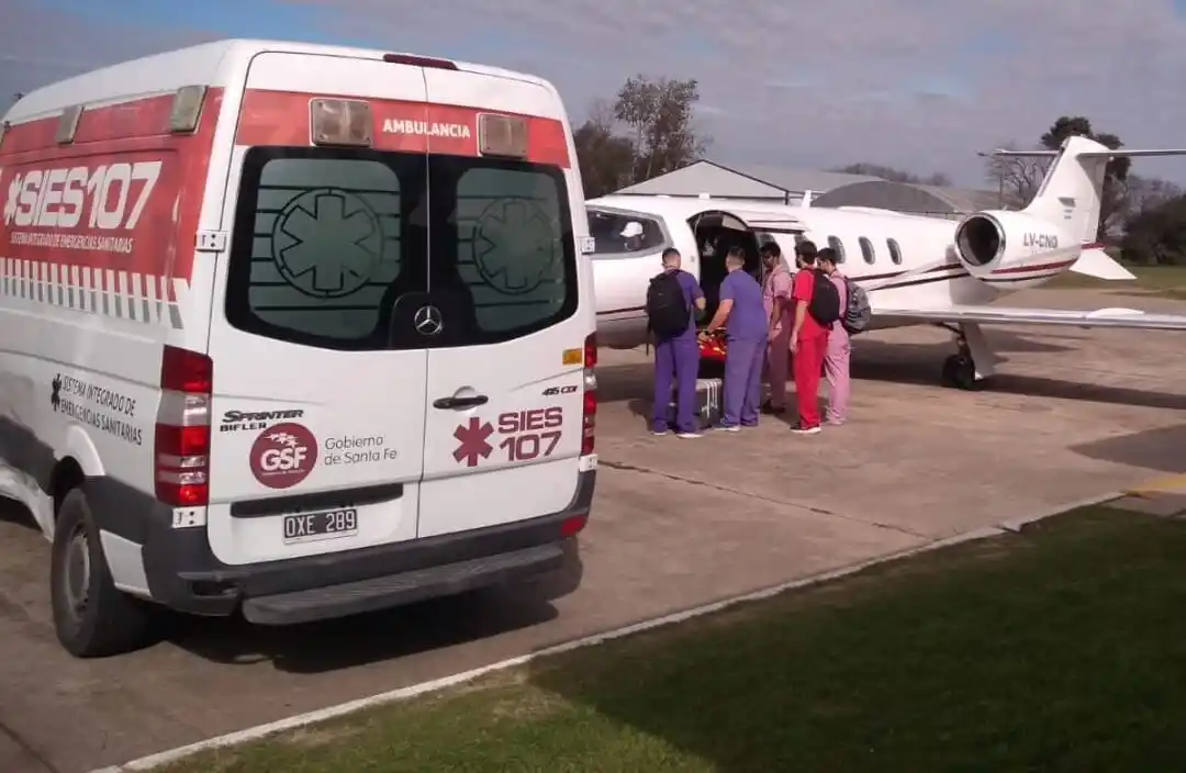 El avión sanitario rumbo al Hospital Austral de Buenos Aires.