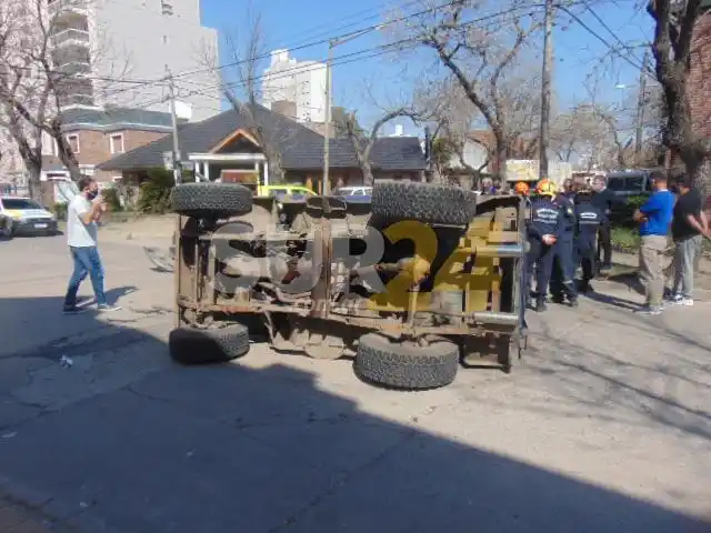 En horas del mediodía de este miércoles, un nuevo accidente de tránsito se registró en calle Belgrano y Pueyrredón. Al igual que en el anterior siniestro que se suscitó durante la mañana (sur24.com.ar/2021/08/espectacular-choque-en-quintana-y-junin-tres-personas-quedaron-atrapadas/), uno de los vehículos involucrados, un Jeep, tripulado por un hombre de 40 años, terminó volcado en uno de sus laterales.