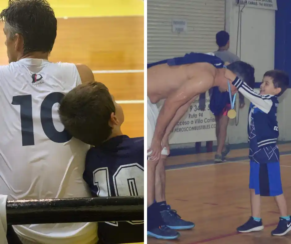 En otro orden de su texto, Speerli remarcó que “cada golpe contra el piso parquet nos dolía a nosotros también, lo sentíamos, ¿no?”, recordando que Juli (su hijo) “no estuvo en la cancha, aunque me dijo que lo vio en un celu, pero tuvo la suerte de verlo jugar antes”.