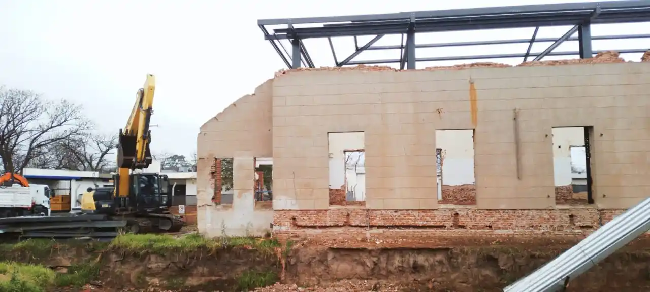 “Estamos en un grado de avance importante, tanto en la restauración del viejo edificio, como en la instalación del pilotaje de la parte nueva, con la expectativa de conseguir todos los materiales necesarios porque hay ciertas dificultades en ese sentido, en especial con ciertos insumos, como las mismas tejas de la construcción original y así garantizar la continuidad del estilo”, remarcó Perotti.