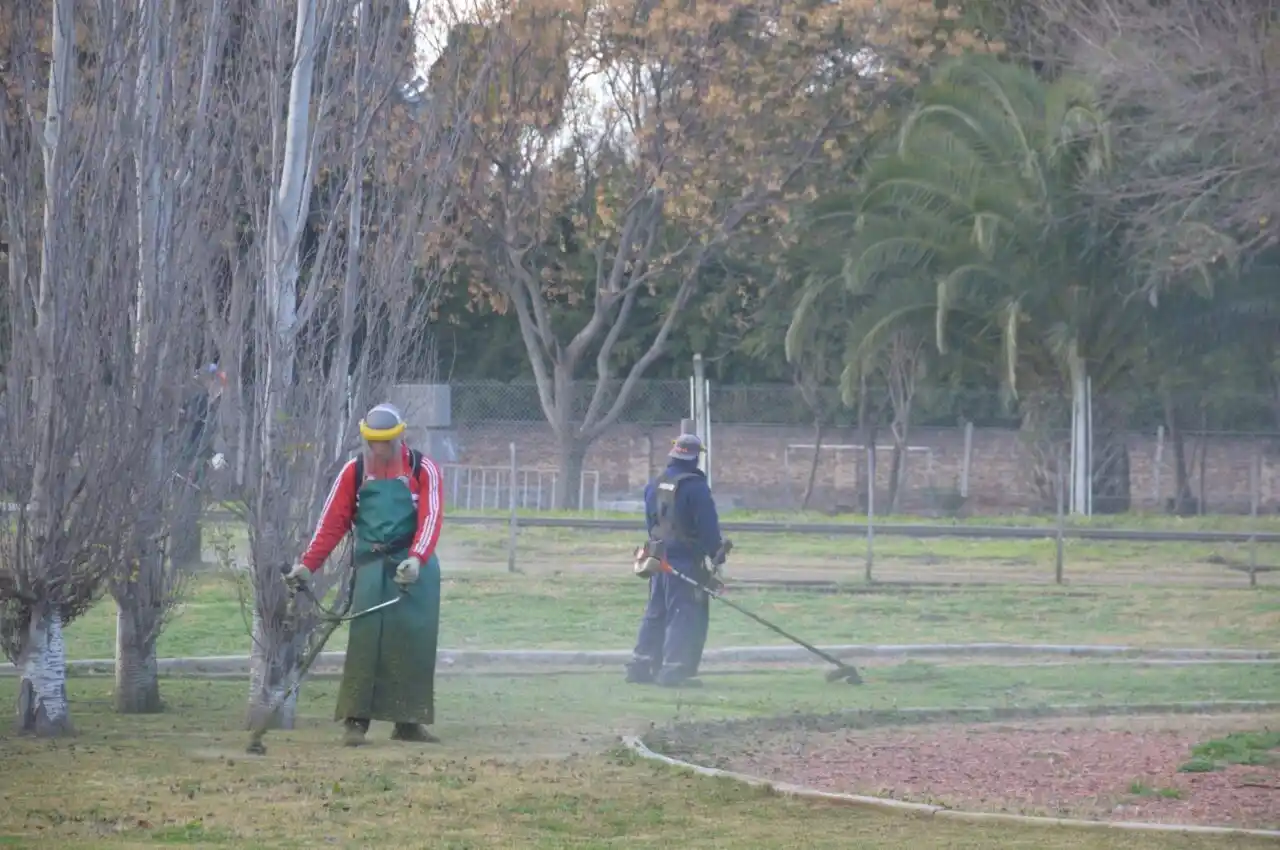 Además, se efectúa corte de pasto con motoguadañas y limpieza en plaza Juan Pablo ll; desmalezado con motoguadañas en los barrios Güemes y Cayetano Silva; y el barrido manual recorre las calles de los barrios San Martín, Victoria y Rivadavia.