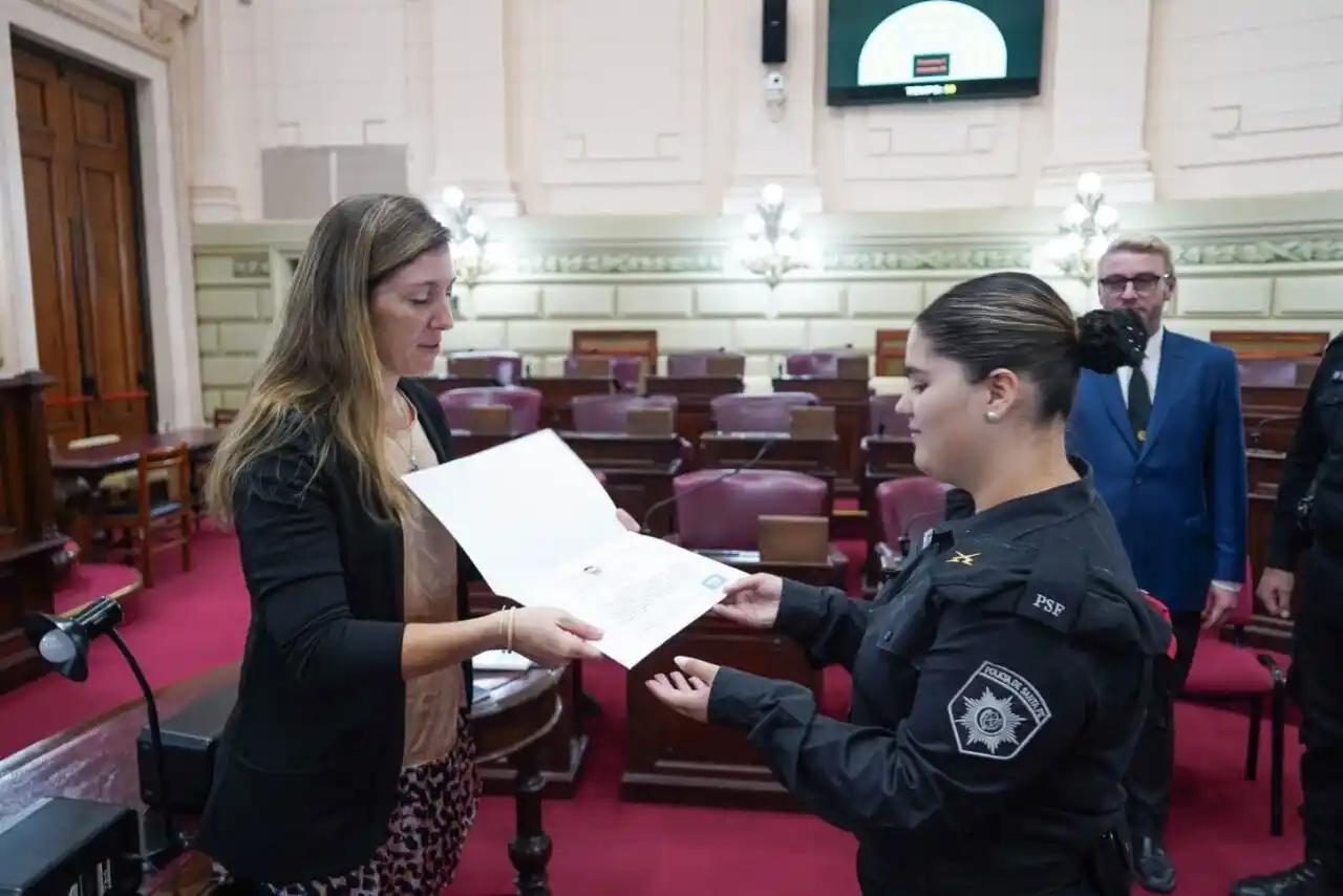 “Desde que ingresamos en la Cámara de Diputados, entre nuestros objetivos principales está el de reconocer este tipo de actos y no solo de policías y demás fuerzas de seguridad, pero la realidad es que no cualquiera está preparado y capacitado para poder hacerlo o no cualquiera se anima a actuar en una situación semejante”, señaló a Sur24 la diputada provincial Natalia Armas Belavi, autora del proyecto que llevó a este acto de reconocimiento, desarrollado este jueves en la Legislatura de Santa Fe.