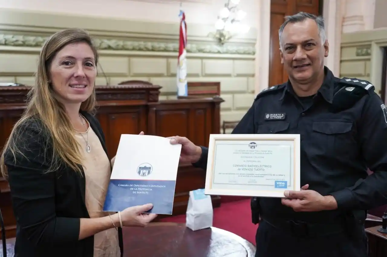 Desde el bloque Vida y Familia de la Cámara de Diputados de Santa Fe, la legisladora Natalia Armas Belavi entregó un reconocimiento a los suboficiales del Comando Radioeléctrico de Venado Tuerto que tuvieron a cargo el heroico operativo de rescate de una beba de tres semanas, la cual presentaba signos de estar broncoaspirando, el pasado 20 de marzo.
