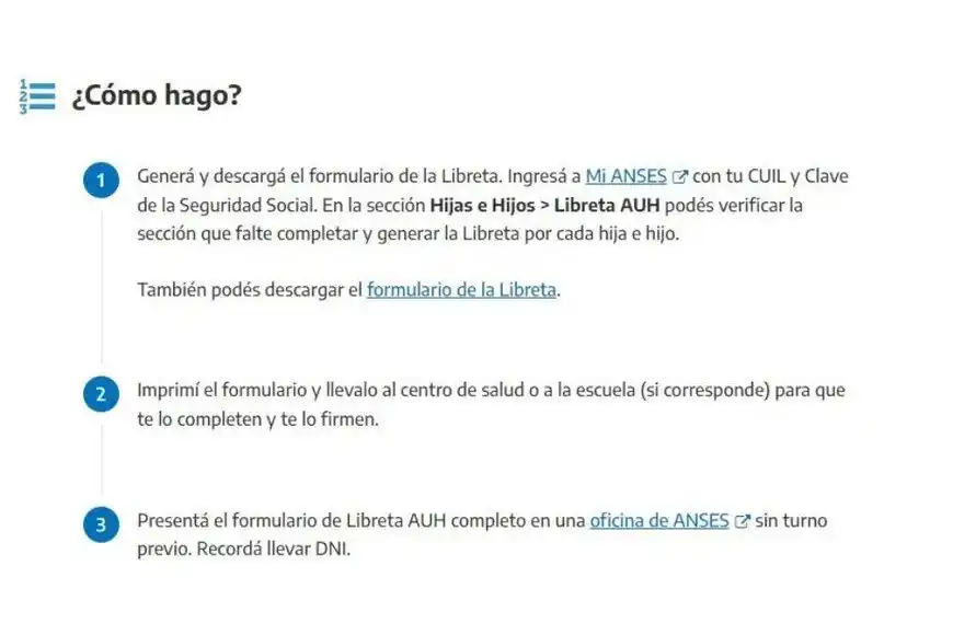 Captura de pantalla Argentina.gob.ar/ ANSES Presentar la Libreta de Asignación Universal.