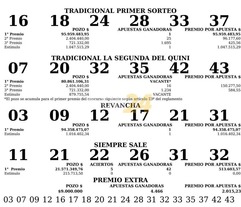 El primero de ellos se quedó con la categoría “Tradicional” y se lleva un premio de $ 95.959.483,95. Mientras que el otro ganó en la “Revancha” y se lleva un monto de $ 94.358.475,07.