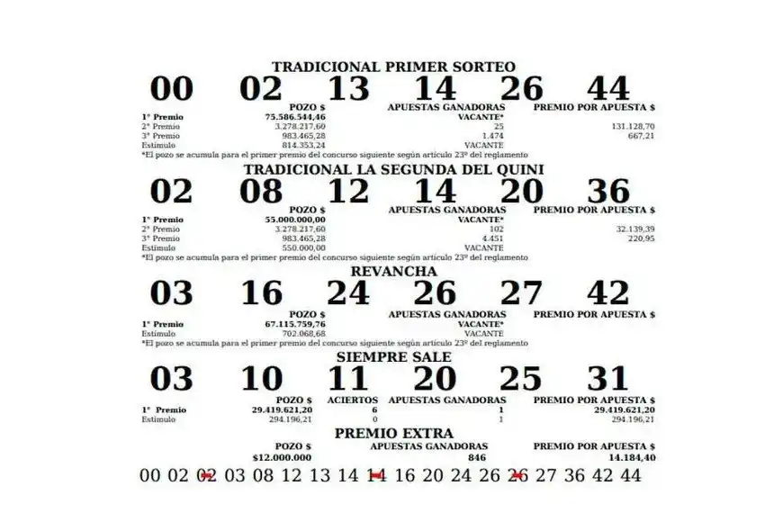 Cabe recordar que el valor de la apuesta Tradicional 1º sorteo y la Segunda es de: $100,00. Con Revancha: $150,00. Con Revancha y Siempre Sale: $200,00.