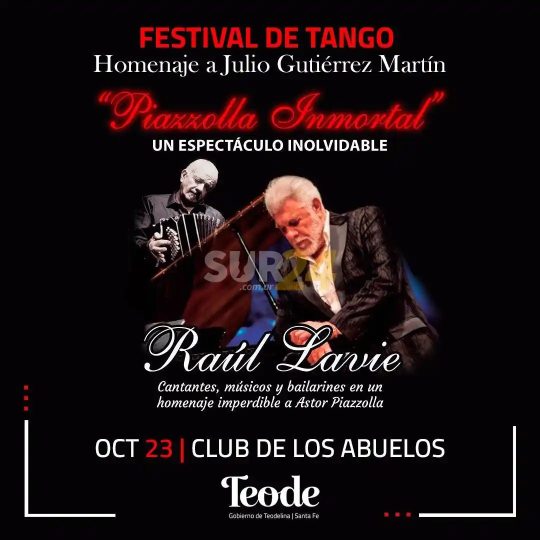 Tras el parate que supuso las restricciones por el Covid-19, el próximo 23 de octubre en el Club de los Abuelos, Teodelina vibrará al ritmo del tango y lo hará con un espectáculo para “alquilar butacas” ya que llegará Raúl Lavié con su espectáculo “Piazzolla Inmortal” en el que reúne a los más grandes éxitos y las canciones emblemáticas de uno de los compositores más importantes de tango en conmemoración a los 100 años de su nacimiento y a 29 años de su fallecimiento.