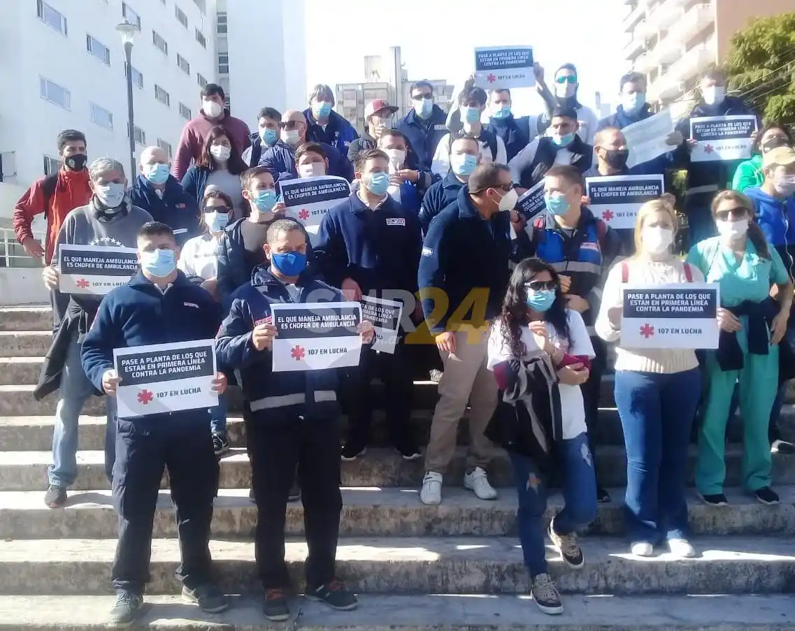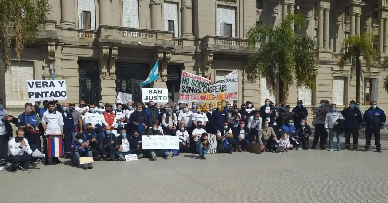 Bajo el reclamo de “No somos Servicios Generales”, unos 120 choferes y 20 enfermeros se reunieron desde las 11 de este jueves primero frente al Ministerio de Salud y luego se congregaron en la Casa de Gobierno. En Rosario, con el mismo pedido, se movilizaron en el Monumento a la Bandera.