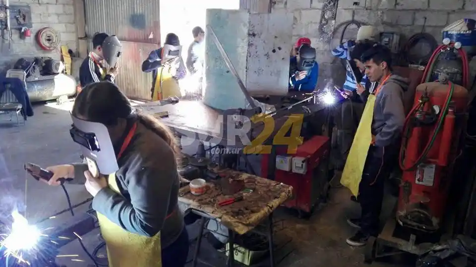 En una localidad vecina, en 2019, el curso de soldadura básica en plena clase práctica. El mes entrante se reanudarán las clases con numerosos alumnos.