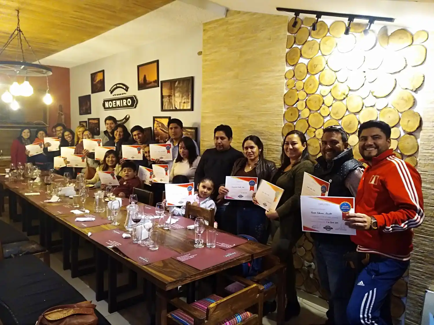 Alumnos peruanos lucen con orgullo sus diplomas luego de aprobar el curso exprés de asadores en instalaciones de Fundo Noemiro.
