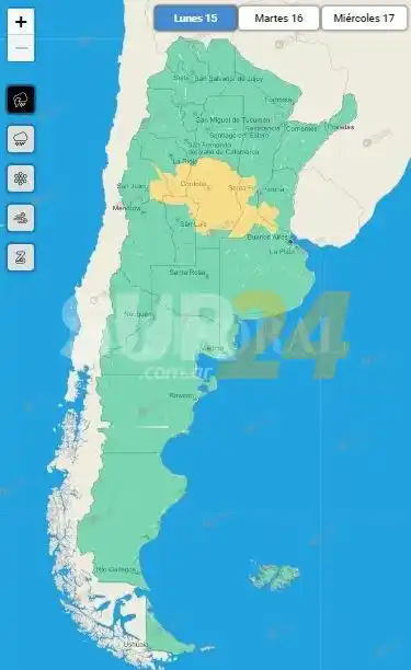 El Servicio Meteorológico Nacional emitió un aviso de alerta por probables tormentas que abarca al sur de nuestra provincia, Buenos Aires, Catamarca, Chaco, Córdoba, Corrientes, Entre Ríos, Formosa, La Rioja, San Juan, San Luis, Santiago del Estero y Tucumán.