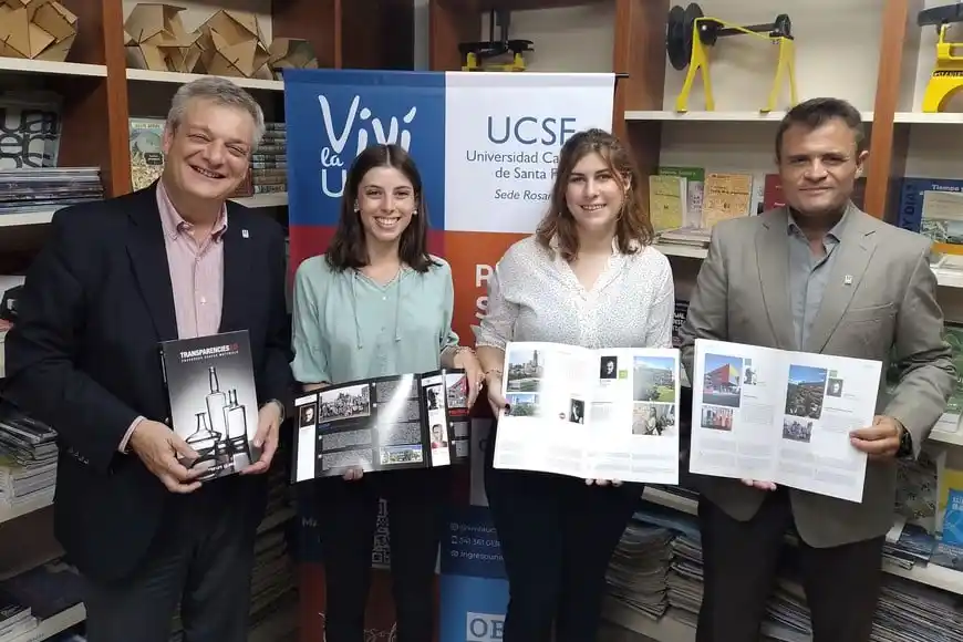 Mercedes Luhaces y Agustina Massei flamantes egresadas de la Licenciatura en Diseño Industrial de la Universidad Católica de Santa Fe de la Sede Rosario fueron galardonadas en uno de los concursos internacionales más prestigiosos de éste área: Bruni Glass 2022. Con la alegría por este logro, se reunieron con el rector de la universidad, Mgtr. Lic. Eugenio Martín De Palma y el director y profesor de la Licenciatura en Diseño Industrial, Gonzalo Savogin. También estuvo presente el delegado de la Sede, Lic. Andrés del Pazo.
