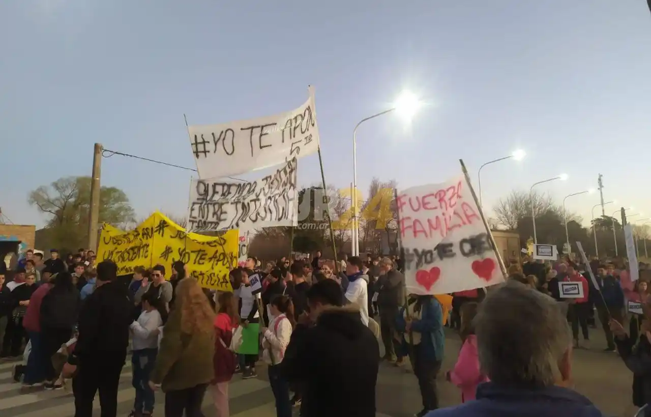 Unas 500 personas, entre familiares, amigos y vecinos, se congregaron frente a la sede de club Los Andes y marcharon hasta la plazoleta del pueblo pidiendo su libertad, con pancartas y carteles, que manifestaban apoyo hacia el adolescente “detenido injustamente”, según los vecinos.