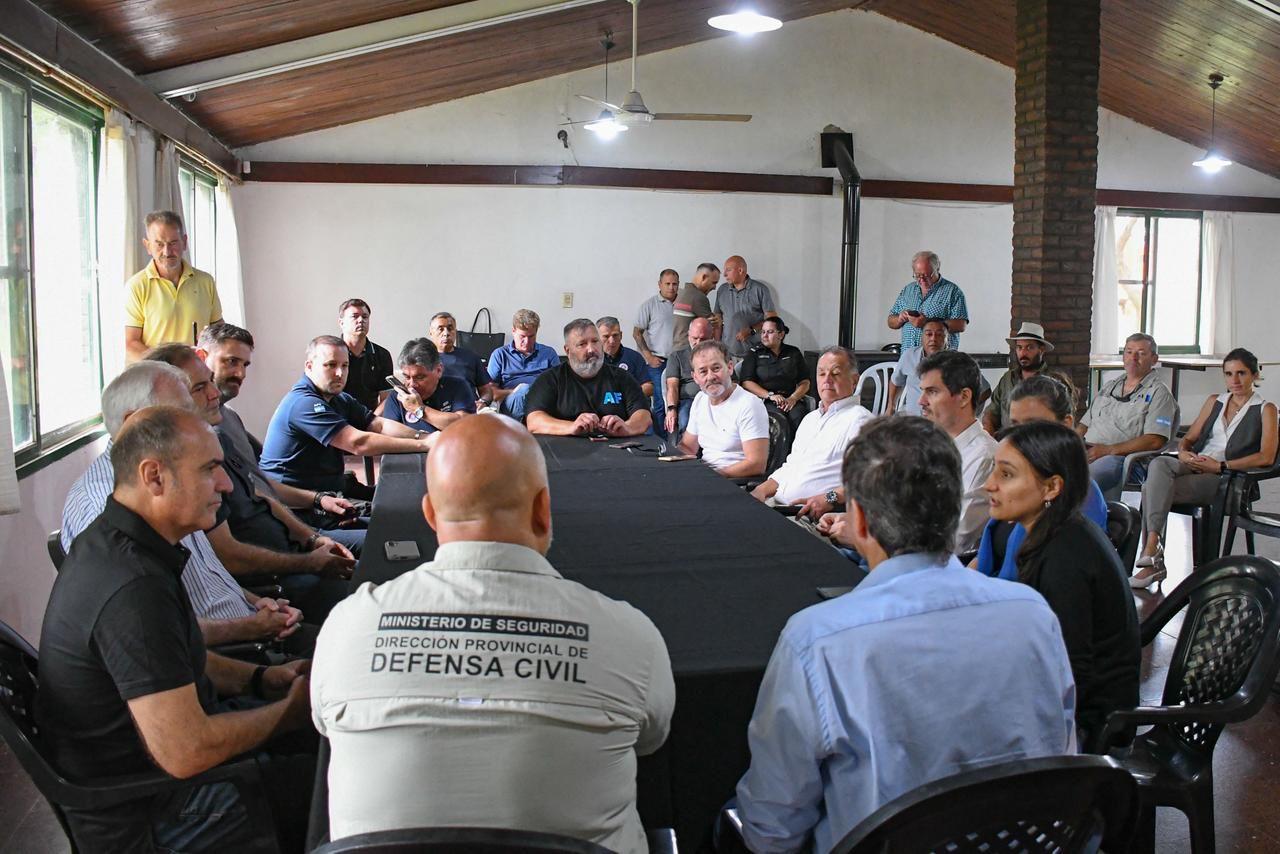 El encuentro se realizó en Alvear y contó con la participación del ministro de Ambiente y Cambio Climático de Santa Fe, Enrique Estévez; el ministro de Seguridad de la Provincia de Buenos Aires, Javier Alonso; el ministro de Desarrollo Económico de Entre Ríos, Guillermo Bernaudo; el secretario de Protección Civil y Gestión del Riesgo de Santa Fe, Marcos Escajadillo; brigadistas, equipos técnicos, protecciones civiles de las tres provincias, representantes de gobiernos locales santafesinos y funcionarios de la AFE.