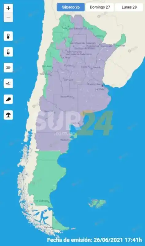 La provincia de Santa Fe, así como Corrientes, Entre Ríos, Buenos Aires, La Pampa, Neuquén, Córdoba, San Luis, Santiago del Estero y Chaco, y regiones de las provincias de Salta, Tucumán, Catamarca, La Rioja, Río Negro, Mendoza y San Juan, están incluídas en la advertencia del SMN.