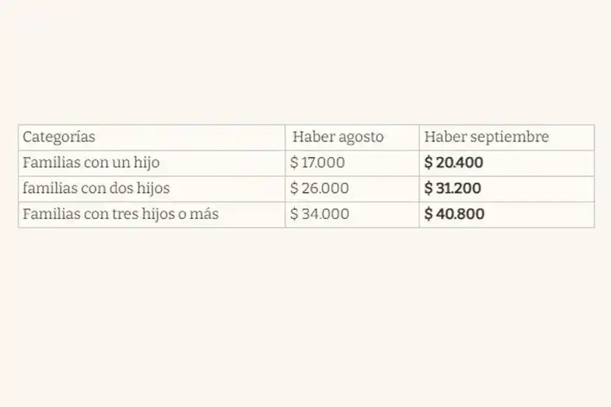 La suba de la Tarjeta Alimentar será por encima del 20%, por lo que pasará de ser $ 17.000 a $ 20.400. El cuadro quedó de la siguiente manera: