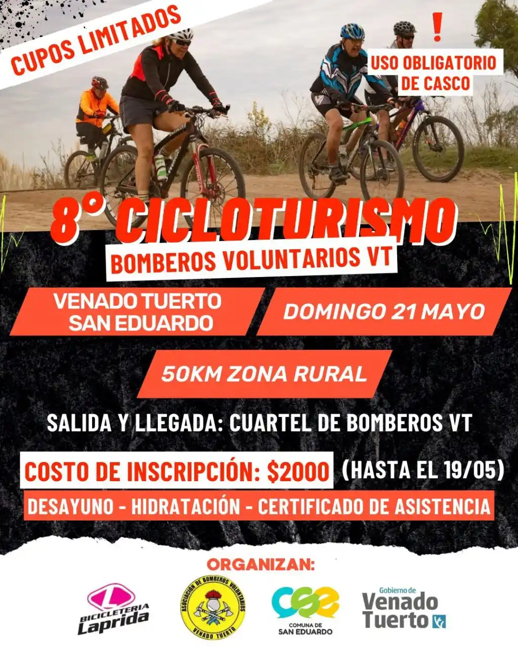 Se viene el “8° Cicloturismo Bomberos Voluntarios Venado Tuerto”