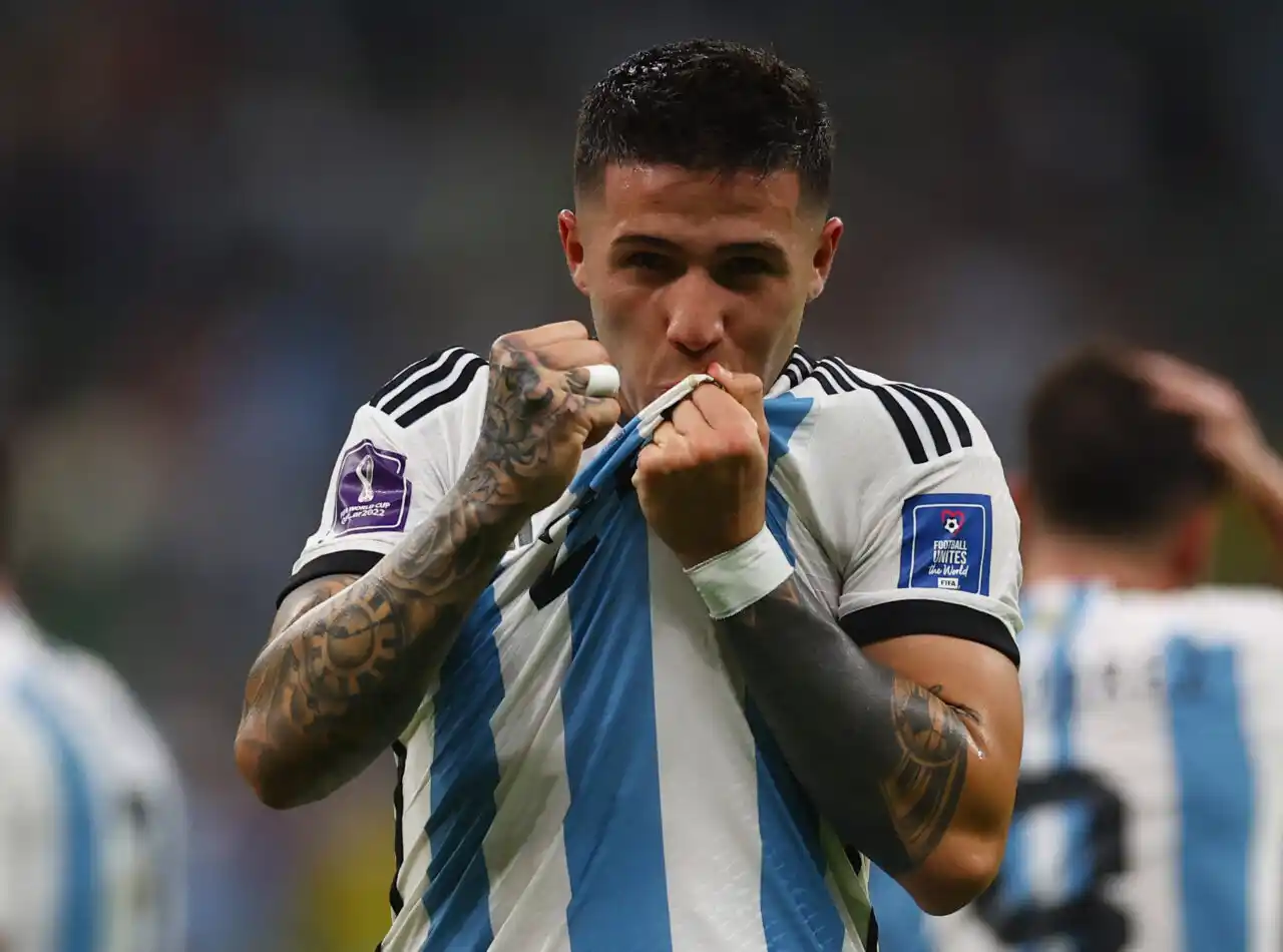 Enzo Fernandez marcó su primer gol en Mundiales. REUTERS/Molly Darlington