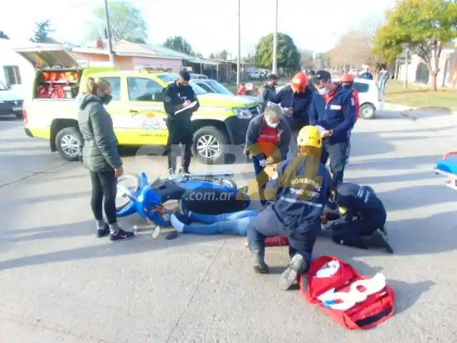 El último episodio informado, ocurrió a las 17.07, en Las Heras y Formosa, donde se produjo un accidente entre una motocicleta Motomel 110 cc., color azul, tripulada por Mercedes de 61 años y una camioneta Isuzu, propiedad de Carlos de 33 años.