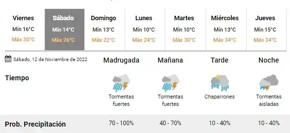 “El área de cobertura será afectada por tormentas, algunas localmente fuertes. Las mismas estarán acompañadas de ráfagas, ocasional caída de granizo, fuerte actividad eléctrica y abundante caída de agua en cortos períodos.