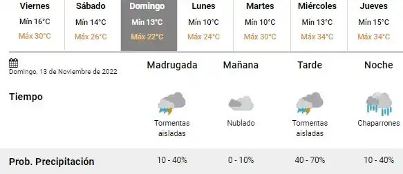 Se esperan valores de precipitación acumulada entre 20 y 40 mm, pudiendo ser superados de forma localizada”, anuncian en la advertencia que se extiende a varias provincias.