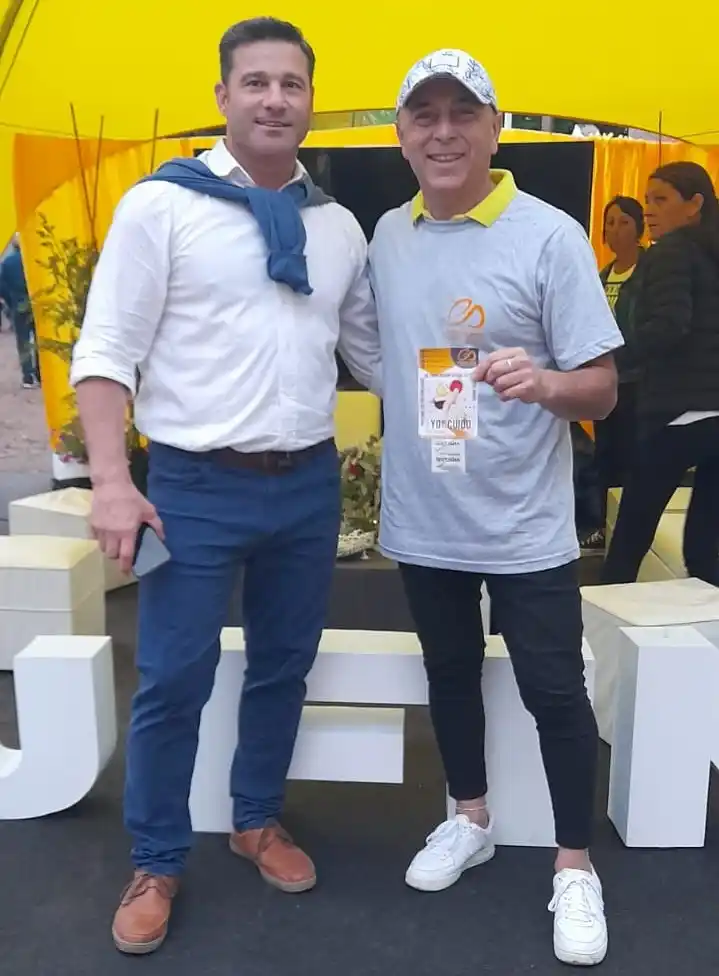 El acompañante terapéutico Sergio Appa junto al intendente Natalio Lattanzi en su visita a Rufino.