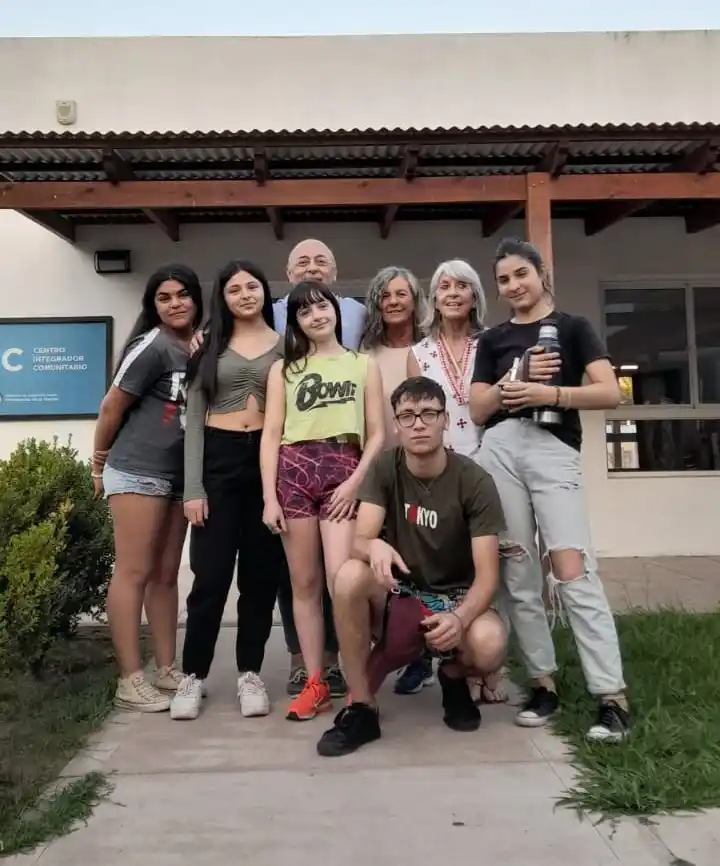 El coordinador de Espacio Ariel, Sergio Appa, junto a los jóvenes integrantes del grupo El Bastón.