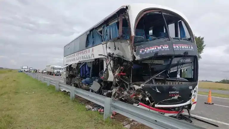 En esas circunstancias, el ómnibus de la empresa Cóndor La Estrella embistió por detrás, a la altura del Km 133 de la ruta 7, a un camión Mercedes Benz que transportaba bebidas y en ese momento estaba estacionado en la banquina, a la espera de un auxilio, después de haber pinchado un neumático.