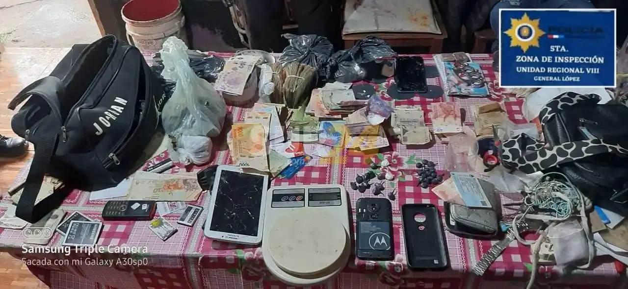 Durante las requisas se halló y secuestró material estupefaciente (cocaína/marihuana), balanzas de precisión, dinero en efectivo, tres plantas de marihuana, una escopeta, cuatro cartuchos Cal. 9 mm intactos, una motocicleta marca Honda Invicta 125 cc con pedido de secuestro, catorce teléfonos celulares y una máquina para contar billetes.