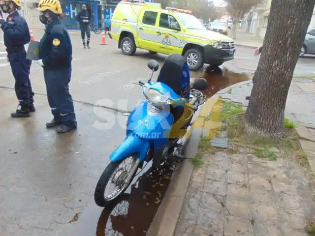 Agentes de Bomberos Voluntarios junto a personal médico evaluaron a la tripulante de la moto, una mujer de 62 años, quien fue dada de alta en el lugar. También estuvieron presentes policía y personal de tránsito.