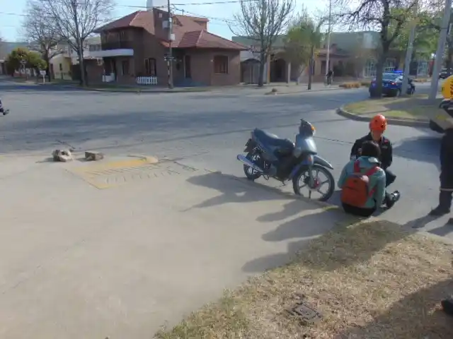 El primer episodio vial ocurrió a las 9.20, en Laprida y Entre Ríos, donde una joven (Yamila de 27 años) que se movilizaba en una motocicleta Guerrero 110cc., aparentemente habría perdido el control del rodado al rozar el pedal de freno contra el cordón de la calle y cayó en la cinta asfáltica. Bomberos procedió a evaluar de forma conjunta con personal del SIES, quienes decidieron no trasladarla. Se hicieron presentes también personal del 911 y Tránsito.