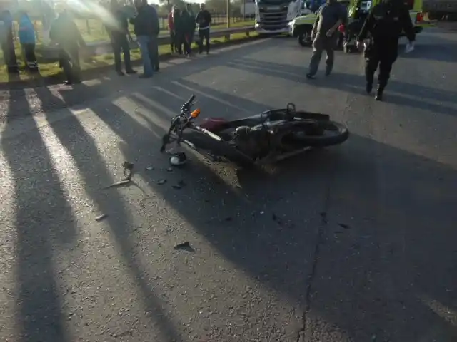 El herido era el conductor de la moto que se encontraba acostado sobre la ruta, se lo evaluó con personal del SIES, se le colocó collar y tabla y luego fue trasladado al Hospital.