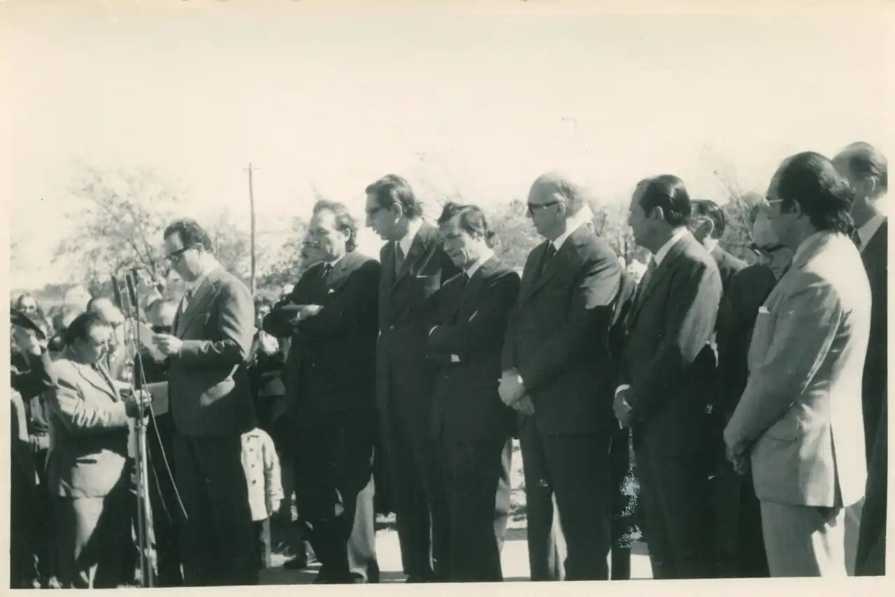 En 1973, el acto de colocación de la piedra fundamental con la presencia de autoridades municipales y provinciales.